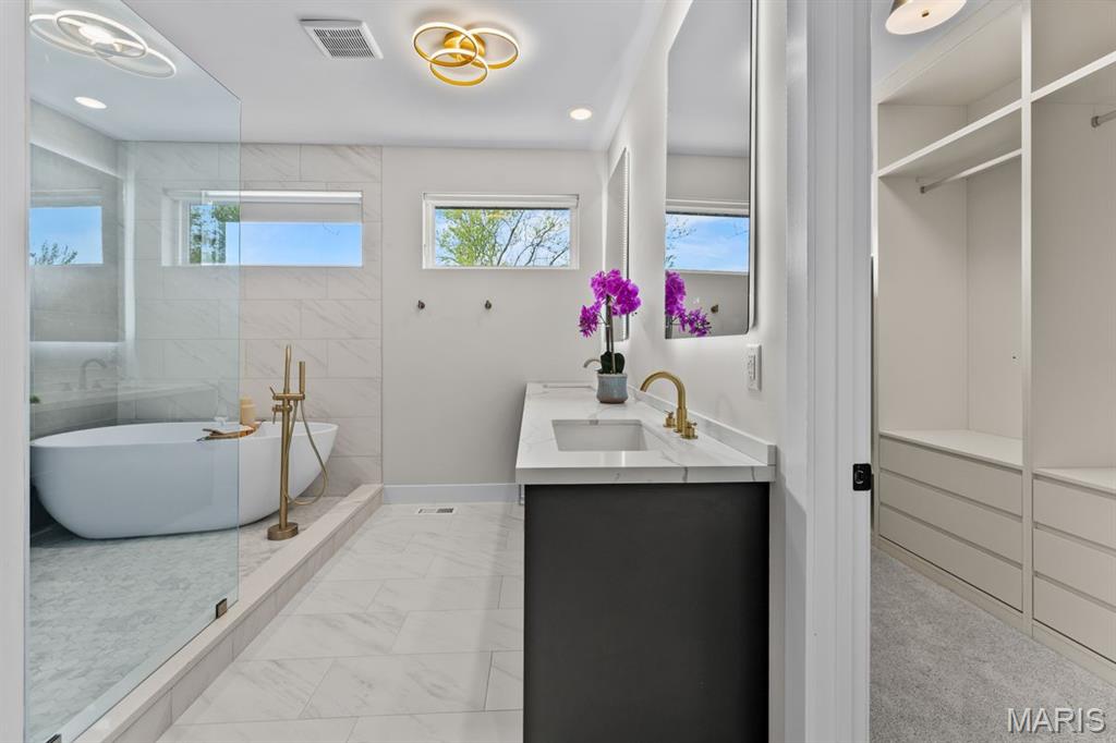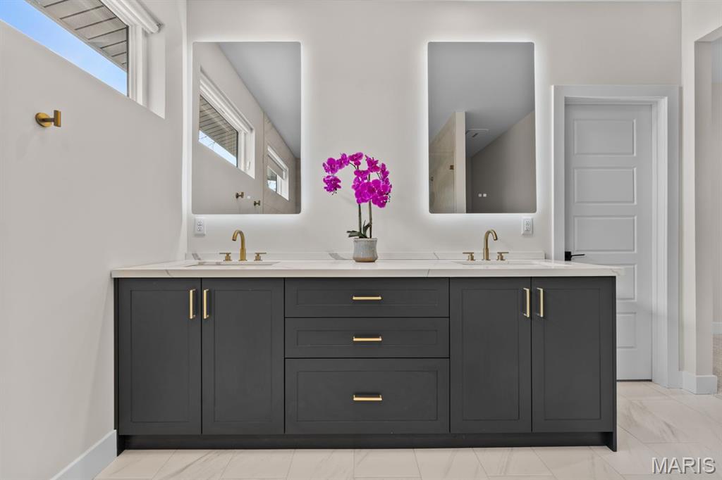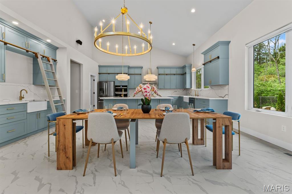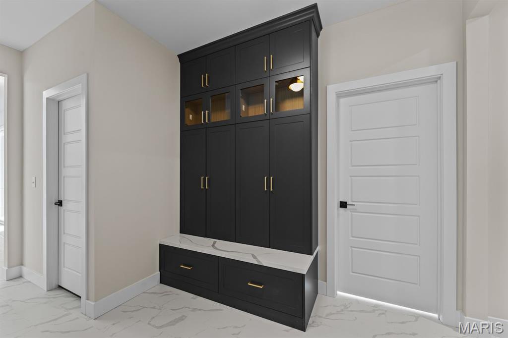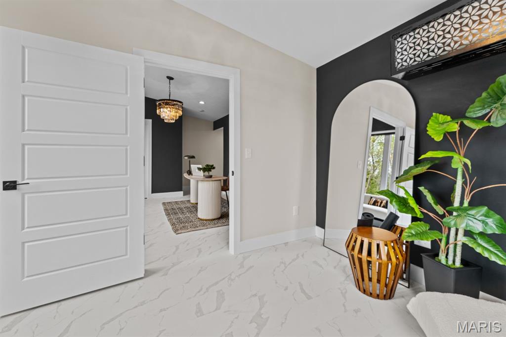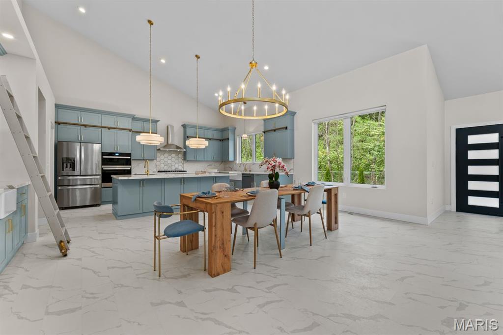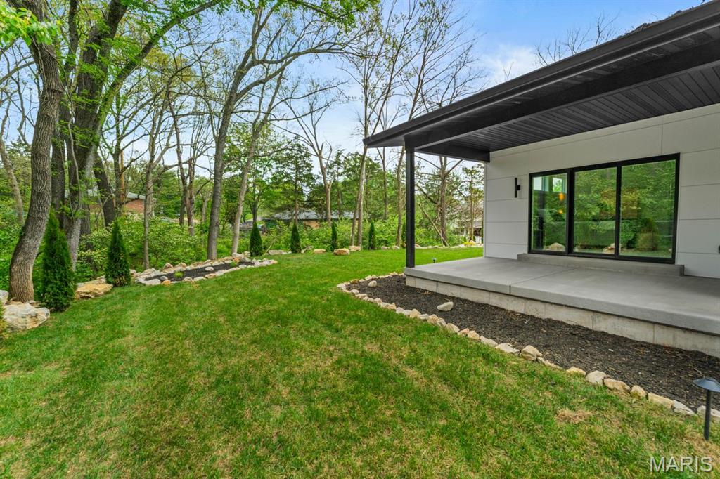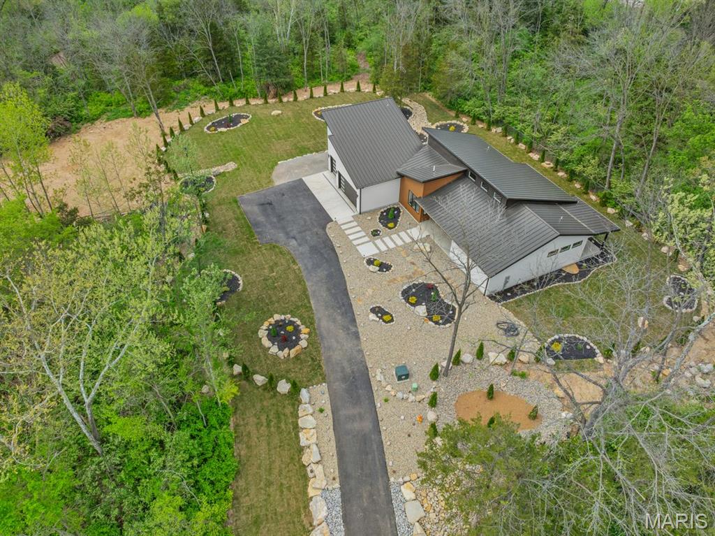 Set on over four private, wooded acres, this brand-new Mid-Century Modern masterpiece redefines contemporary living with architectural precision and effortless sophistication. A long, dramatic drive leads to the striking facade, where clean lines, expansive glass, and impeccably landscaped grounds create a true sense of arrival. A stunning black metal pivot door opens to soaring ceilings and an open-concept plan bathed in natural light from high transom windows. The living room centers around a sleek linear fireplace, while the designer kitchen impresses with custom cabinetry, a sprawling island, and a built-in coffee bar for refined everyday living. The main-floor primary suite is a private sanctuary, featuring its own covered patio, dual walk-in closets, and a spa-worthy bath with a soaking tub encased within a glass-wrapped shower. A stylish laundry and drop zone complete the main level. Upstairs, a lofted office with separate sitting area provides the perfect creative escape, while a breathtaking floating staircase with all-glass railings leads to the finished lower level, offering two bedrooms, a full bath, and expansive recreation space. Outdoors, mature trees and total privacy create an inspiring natural backdrop for future amenities or peaceful retreat. A three-car garage and exceptional craftsmanship throughout complete this modern estate - where design, nature, and serenity exist in perfect balance.