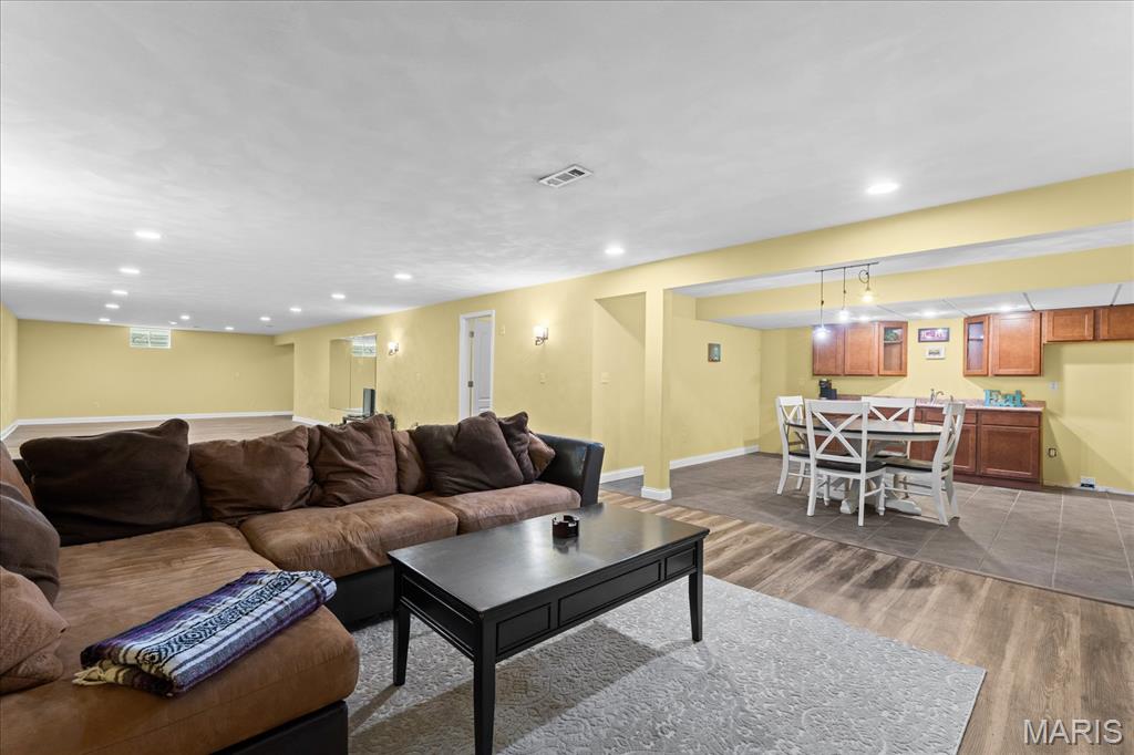 Looking for a gorgeous, custom ranch in Wildwood Lake Estates? Here you go...this 4-bedroom, 4-bath unbelievable home sits on it's own beautiful, tree-lined lot and offers a private back yard, with a large screened porch and separate patio with custom brick paving surrounding both. Step inside to a modern, well-styled, vaulted great room with beautiful flooring that boasts custom bookshelves, a see-through fireplace, abundant windows offering natural light and a private, tree-filled view. Move to the charming and well-appointed chef's kitchen with granite counter tops, beautiful custom cabinetry, ceramic tile floors, s/s appliances, a separate island, updated lighting, see-through fireplace, and a large dining area. Ready to enjoy your coffee or drinks outside? Step out from the kitchen/dining area onto your 3-season, screened-in porch, complete with ceiling fan and lighting, or just a few steps further--onto the large patio--and revel in the peace and solitude of a huge tree-lined backyard. Back inside, the primary suite easily fits a king-sized bedroom set, and the primary bath features a soaker tub, large walk-in shower and access to the walk-in closet. Three more bedrooms offer even more space for a growing family, guests, or an office, and a full bath is located conveniently, but quietly, near all three. The lower level is massive, finished with a large rec/family room, bar, a kitchen and dining area, and gives an additional guest room and full bath, along with loads of unfinished space to house anything and everything! The 3-car, over-sized garage features a custom workbench and plenty more room for bikes and every outside toy or yard item you can think of. Step back inside from the garage to find the laundry room with utility sink and "drop zone" area on one side, and an adorable bathroom plus bidet on the other. This entire home was created for "living and entertaining" both inside and out--with beautifully landscaped, private yards both front and back, and a firepit, patio and two porches. Radon Mitigation system and sump pump system are installed. Add in the gorgeous custom finishes throughout, immaculate condition, and prime location near schools, walking paths, woods and lakes, and you'll see why this home is definitely "move-in ready," and just waiting for it's next owners to love and make their own.